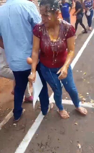 El hecho se registró en la mañana de este miércoles cuando la edil Ysabel Beatriz Colmán (PLRA) fue hasta la Municipalidad de Arroyito con una carpeta en mano e intentó ingresar a la sede comunal. Antes de llegar al acceso principal los manifestantes, hombres y mujeres, le lanzaron huevos.