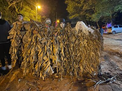 Luego en el mismo lugar ya se hicieron los juegos y desafíos que consistieron en utilizar antorchas encendidas de (kapi’i) que significa paja. Posteriormente, ya se hicieron presentes los guaycurú con figuras revestidas de hojas de banano seco y las peculiares máscaras de tela y madera.
