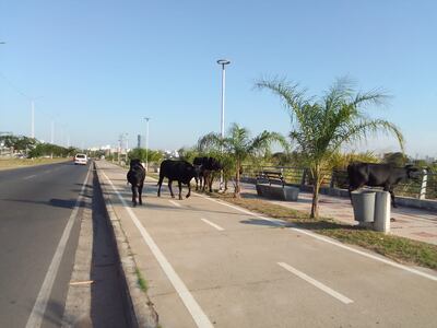 En la tarde de este jueves se pudo observar a un grupo de vacas sueltas en la Costanera de Asunción, poniendo en peligro a los conductores que transitaban por la importante vía de acceso y salida de la capital.