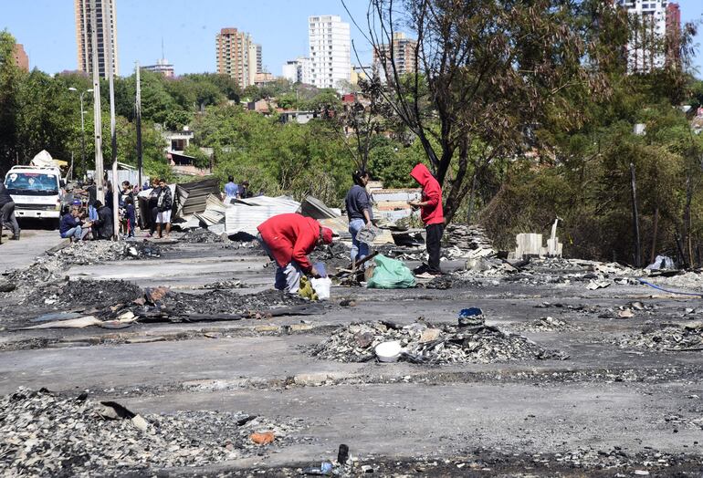 Funcionarios de la Municipalidad de Asunción y militares realizaron ayer la limpieza y despeje de la zona aledaña a la avenida Costanera Norte donde varias viviendas fueron destruidas por un incendio en la tarde y noche del domingo último.