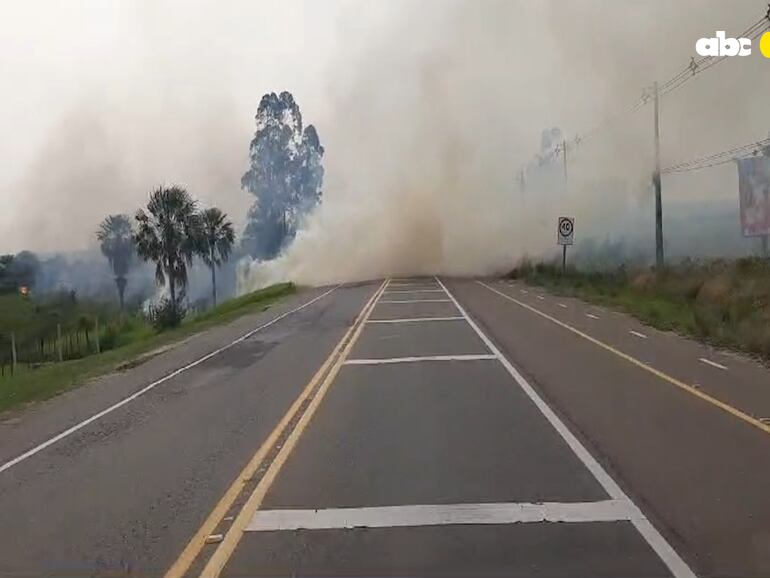 En las imágenes se puede ver cómo el humo se encuentra sobre la ruta, ya que en ambos lados hay fuego.