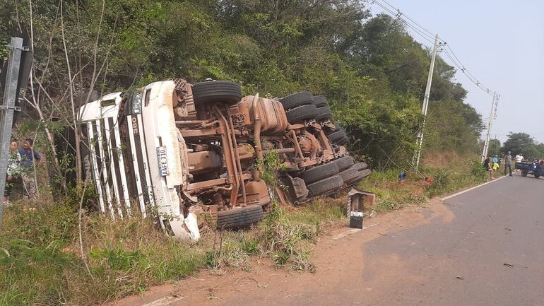 El accidente de tránsito ocurrió alrededor de la media mañana de este martes sobre la ruta Yaguarón-Pirayú, a la altura del barrio N° 2, en circunstancias que aún no se esclarecieron. El chofer salió ileso y fue asistido por los vecinos.