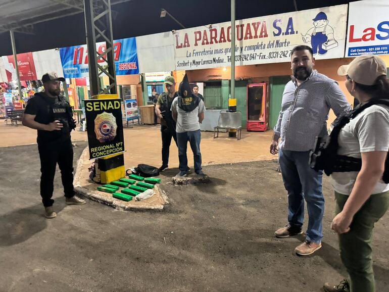 El procedimiento se realizó en la noche de ayer en la terminal de ómnibus “Jakare Valija” de la ciudad de Concepción, agentes de la regional número 7 de la Secretaría Nacional Antidrogas (SENAD) detuvieron a Carlos Alberto Santacruz Segovia, de 36 años.