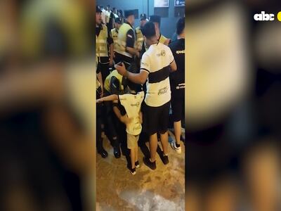 Tanto los empleados de seguridad del club Libertad, que jugaba de local, como agentes de la Policía Nacional fueron grabados cuando “inspeccionaban” a niños, adolescentes y además una joven fue manoseada en las piernas cuando llevaba puesto un pantalón corto, además de sus partes íntimas.
