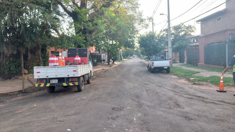 Esta mañana siguen las obras de recapado y mejoramiento del asfalto en las calles alternativas para el desvío de la avenida Mariscal López, donde se tiene previsto el inicio de una obra que implicará el bloqueo de la vía por varias semanas. Los vecinos de las calles conectoras celebraron que por fin se hayan escuchado los reclamos.