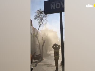 En los videos se puede ver a trabajadores consternados mirando la gran humareda desde fuera de los salones comerciales.