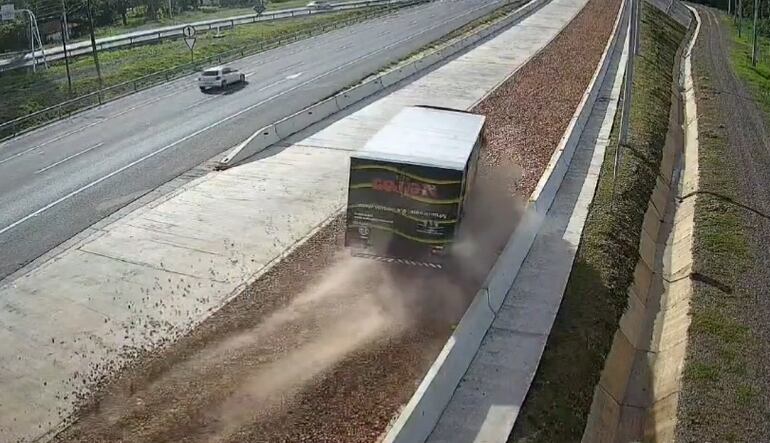 Según las imágenes captadas por una cámara de seguridad y difundidas por el Ministerio de Obras Públicas y Comunicaciones (MOPC), el incidente ocurrió alrededor de las 17:02, cuando un camión de mediano porte ingresó a la rampa de emergencia tras presentar problemas en los frenos.