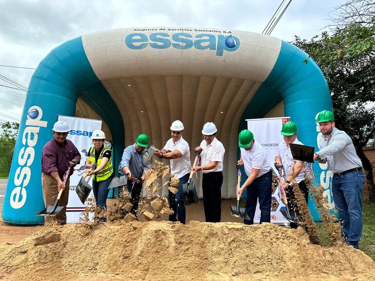 Al protocolar acto de palada inicial realizada en la villa veraniega asistieron el presidente de la aguatera, Luis Fernando Bernal Mazó; el intendente de San Bernardino, Emigdio Ruiz Díaz (colorado cartista), representantes de la Gobernación de Cordillera, diputados del departamento y otras autoridades locales.