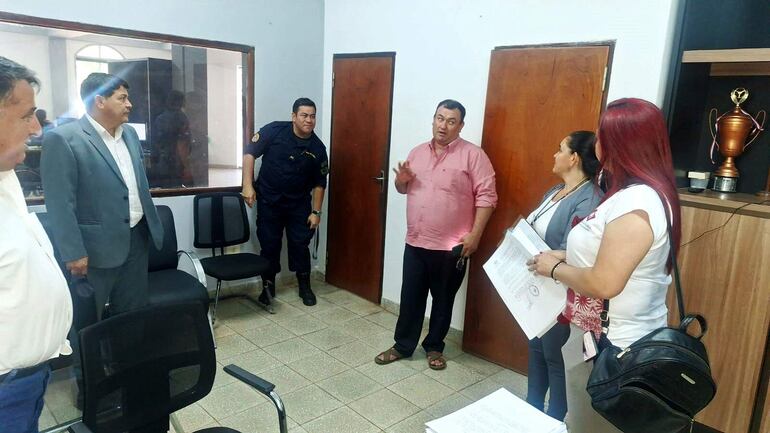El fiscal de la Unidad Penal Nº 1, Alcides Espínola, acompañado de efectivos policiales de la Comisaría de Acahay, llegó a la Municipalidad y fue recibido por el intendente Aldo Eustacio Lezcano (Alianza), quien fue denunciado el 29 de octubre por “coacción sexual y violación, acoso sexual y coacción grave”.