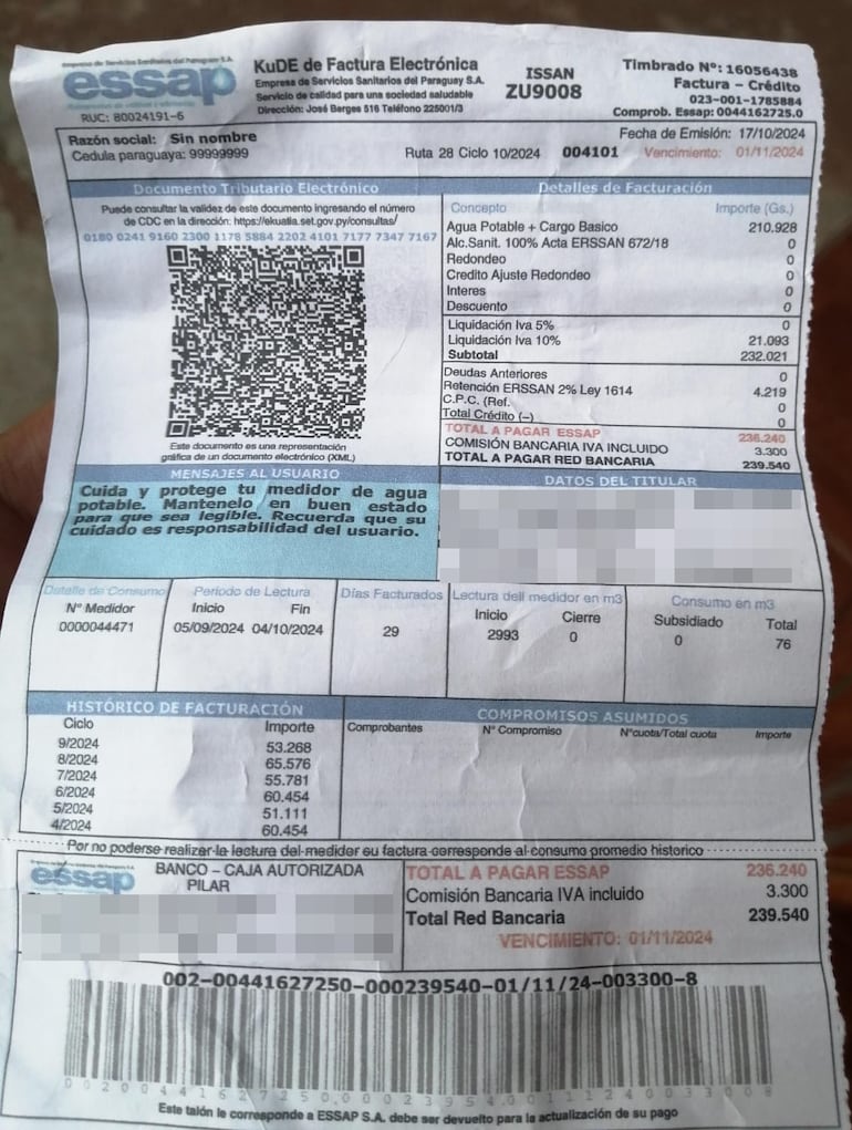 Por su parte, Gerardo Mellone, jefe de la Essap en Pilar, reiteró que las facturas incorrectas no deben ser abonadas, ya que se emitirá una nueva facturación una vez resuelta la situación. Sin embargo, este mensaje ha incrementado la preocupación de los usuarios, quienes temen que las deudas se acumulen y deban ser refinanciadas más adelante, lo que consideran una estrategia abusiva de la empresa.