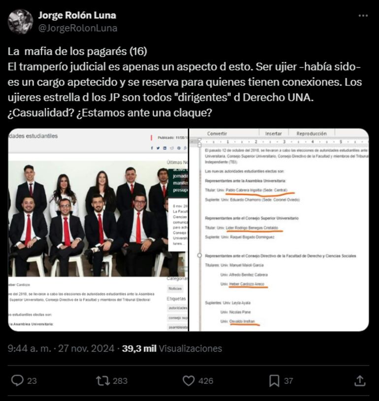 Todos los funcionarios fueron denunciados en el perfil de la red social X del abogado Jorge Rolón Luna por supuestamente formar parte de un esquema de pagarés en los que los funcionarios - todos ujieres notificadores del Poder Judicial - fraguaron notificaciones de demandas por el cobro de pagarés, dando vía libre al proceso que llegaba al embargo del salario de las víctimas, sin que las mismas sepan del proceso y puedan defenderse.