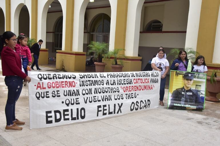 La familia del suboficial Edelio Morínigo se presentó en la Basílica de Caacupé y reclamó atención de las autoridades, que parajódicamente se ausentaron masivamente hoy durante la misa central. “Orerendumína (escúchennos, por favor”, fue el ruego.