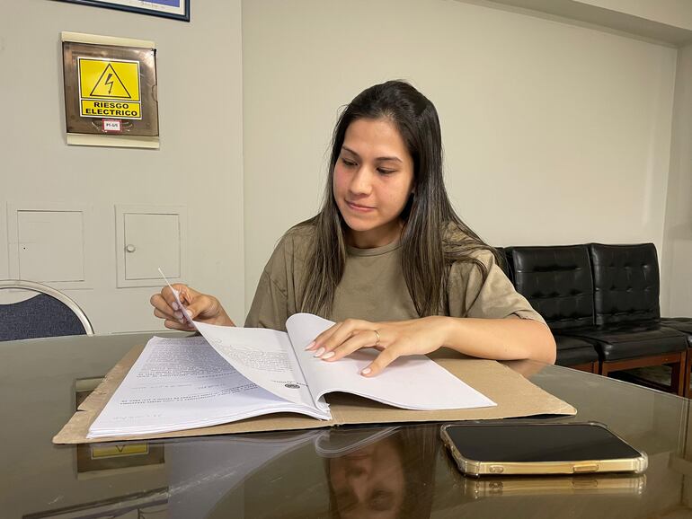 Se trata de María Alejandra Ayala (27), quien acudió a la redacción de nuestro diario y denunció una supuesta confabulación en el marco de “la mafia de los pagarés”. En ese contexto, señaló que fue demandada por la playa de vehículos “San Pablo Automotores SA”, de la cual había adquirido el 7 de julio de 2022 un vehículo Toyota Allion planteado, con matrícula AAKI 626, por la suma de G. 55 millones.