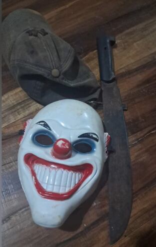 Al menor se le incautaron el celular robado, un machete de 30 centímetros, una máscara de payaso de plástico, una pipa casera, un encendedor y una bolsita de polietileno que contenía presunta marihuana.