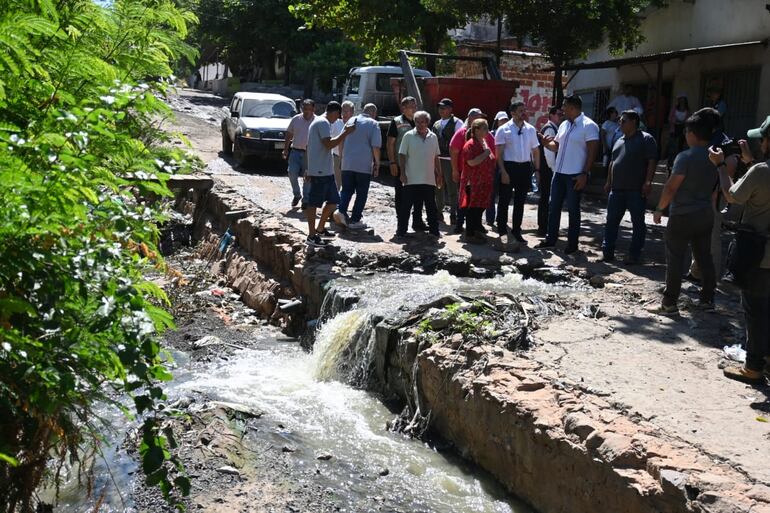 El titular de la Essap, Luifer Bernal, intentó deslindar su responsabilidad, culpando a administraciones anteriores por una obra inconclusa y mal hecha. “Hoy estamos teniendo inconvenientes en la calle (Lidio) Cantaluppi. Hubo problemas en la instalación de los colectores y los accesorios, que hicieron que tengamos inconvenientes permanentemente”, dijo.