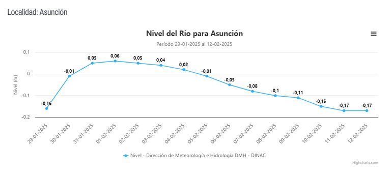 Otras localidades que no registraron diferencias son Itá Enramada -0,36 metros- y Vallemí -2,23 metros.