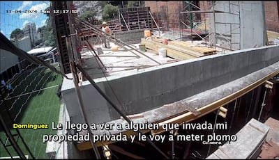 En el vídeo supuestamente se ve a una persona que sería Domínguez y se le escucha decir a un obrero: “Le llego a ver a alguien que invada mi propiedad privada y le voy a meter plomo”.