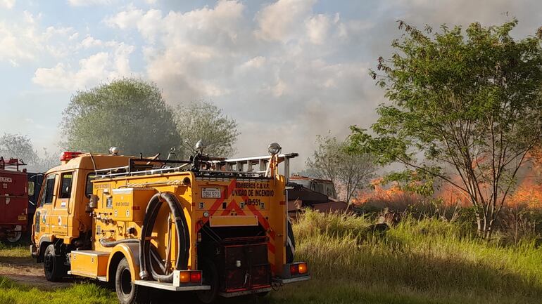 El incendio se volvió incontrolable en un momento, movilizando a vecinos que, con baldes de agua y mangueras, intentaron contener el avance del fuego mientras dos compañías de bomberos trabajaban intensamente en la zona. A pesar de sus esfuerzos, un camión de gran porte que se encontraba en el patio de un taller también fue alcanzado por las llamas.