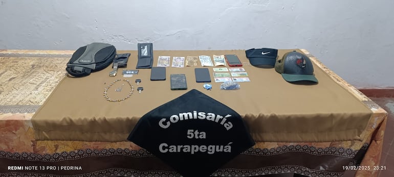 Tras ser interceptados, todos los ocupantes del vehículo fueron inspeccionados. Durante el cateo los intervinientes incautaron dos bolsas de polietileno de color celeste, que contenían las sustancias (presunta cocaína y crack), tres teléfonos celulares y dinero en efectivo, en la suma de G. 86.000, además de una cartuchera tipo bandolera de color gris.