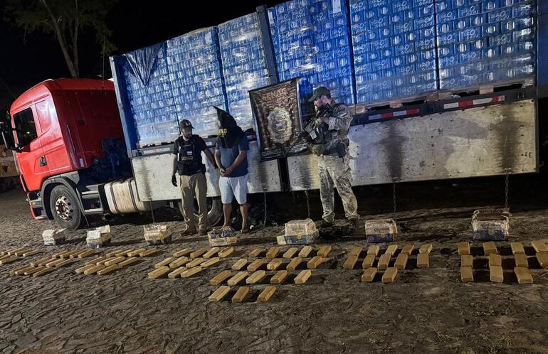 El informe señala que detectaron una carga ilícita dentro de un camión de transporte de mercancías. El vehículo de la marca Scania iba conducido por Enrique Dávalos Benítez (46), de nacionalidad paraguaya.
