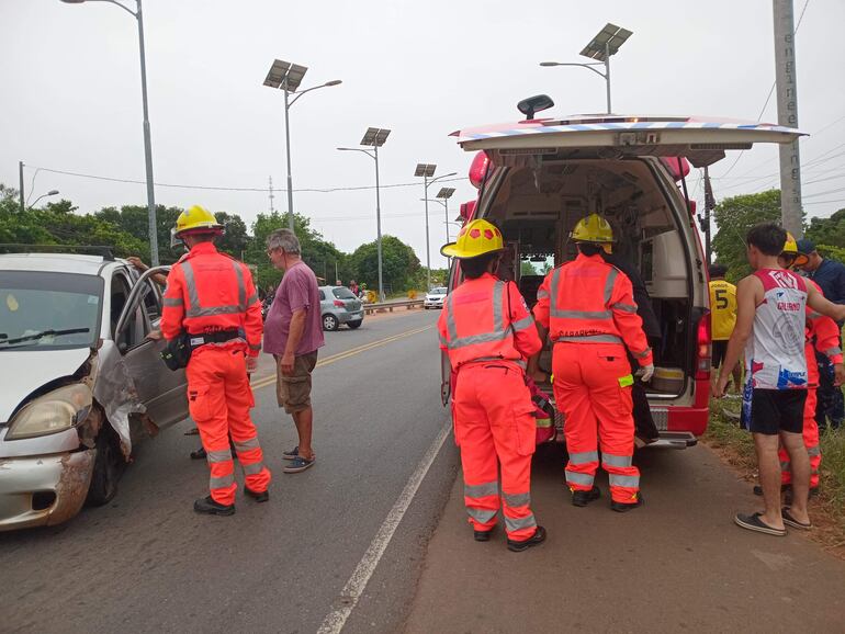 Hasta el lugar llegaron los bomberos voluntarios, quienes asistieron a los accidentados, que presentaban golpes y lesiones leves. Los efectivos policiales se encargaron de despejar la ruta para liberar el tránsito vehicular.