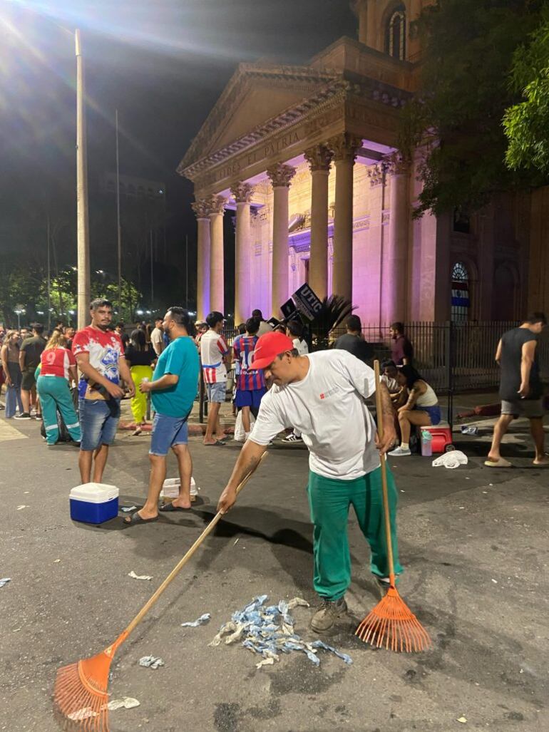El operativo de limpieza permitió dejar en un cierto grado de limpieza las calles del microcentro y alrededores del estadio después de la celebración por la victoria de la selección paraguaya.