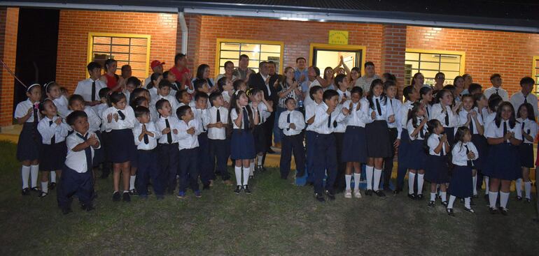 La presidenta de la comisión de padres, Leopoldina Cristaldo, dijo que la comunidad educativa está feliz por las dos aulas nuevas construidas con los recursos de la Municipalidad de Santaní, administrada por el intendente municipal Agustín Ovando (ANR).