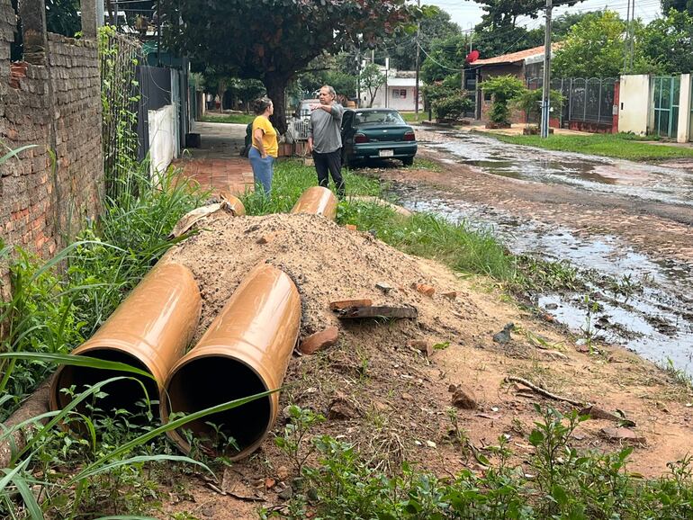 Manifiestan que están así desde hace más de un año y agregan que funcionarios de la Essap van, dejan caños y se van sin solucionar nada. ¿La excusa? No hay presupuesto.