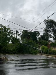 En el barrio Palomar de Lambaré, sobre la calle Bruno Guggiari, cayó un árbol sobre el tendido eléctrico, lo que ocasionó la caída de tres postres de la Ande, dejando a gran parte de la zona sin luz.