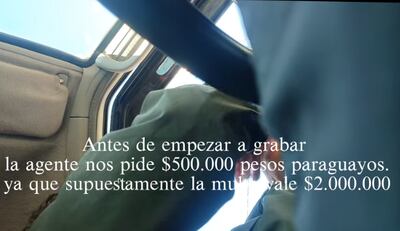 En principio, narran Brenda y Andrés, protagonistas de la historia, la mujer les había dicho que a la infracción de tránsito que cometieron -de cuya naturaleza no se informa- le correspondía una multa de G. 2.000.000. Sin embargo, la agente está dispuesta a no aplicar la multa oficial a cambio de G. 500 mil, que los colombianos dijeron no tener.