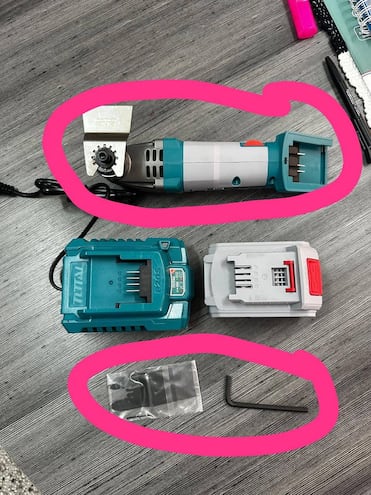 En la imagen compartida por el denunciante, se ve un equipo denominado “Multiherramienta inalámbrica”, que sirve para realizar cortes, raspados y lijados en distintos materiales.