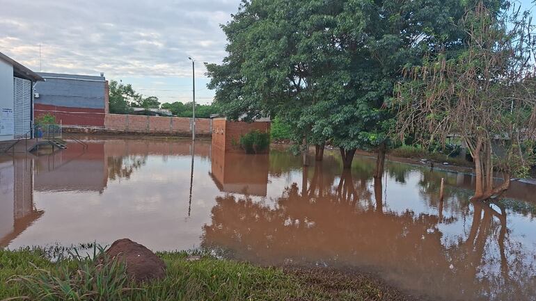 En el Hospital General de Santa Rosa del Aguaray, tras las intensas lluvias, entre las áreas inhabilitadas se encuentran el pabellón de Pediatría, la planta de oxígeno y el depósito de residuos, zonas que permanecen con acumulación de agua debido a que están ubicadas en un sector bajo del predio hospitalario.