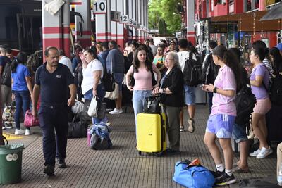 Varias personas que estaban en la EBA aguardaban buses para ir al interior del país, luego de varias horas de viaje desde el exterior, ya que aprovechan estas fechas para visitar a familias y familiares.