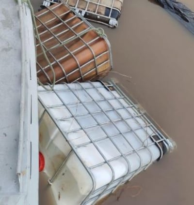 Durante la verificación de la embarcación, se encontraron, inicialmente, cuatro bidones de 1.000 litros, que aparentemente estaban cargados.