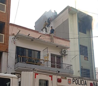 Bomberos de la Policía Nacional y de otras compañías intervinieron en un incendio que se registró en lo que sería el cuarto piso de un edificio ubicado entre Cerro Corá y Tacuary, zona céntrica de Asunción.