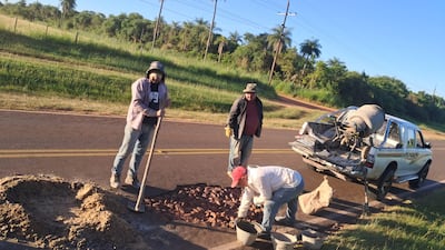 Un grupo de cinco docentes, miembros de la Asociación de Educadores de Santa María, Misiones, comenzó a solicitar colaboración entre colegas para realizar el bacheo de algunas zonas peligrosas de la ruta departamental D059, que une la comunidad mariense con el distrito de Santa Rosa.