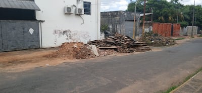 En la vía pública se observan montañas de escombros, maderas viejas y restos de poda de árboles. Los desperdicios ocupan media calzada, dificultando el paso de vehículos por la zona. Incluso se obstaculizan los accesos a las cocheras de las casas vecinas del lugar.