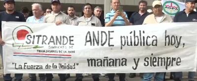 En la mañana de este lunes, un grupo importante de funcionarios se manifestó en la sede central de la Administración Nacional de Electricidad (ANDE).