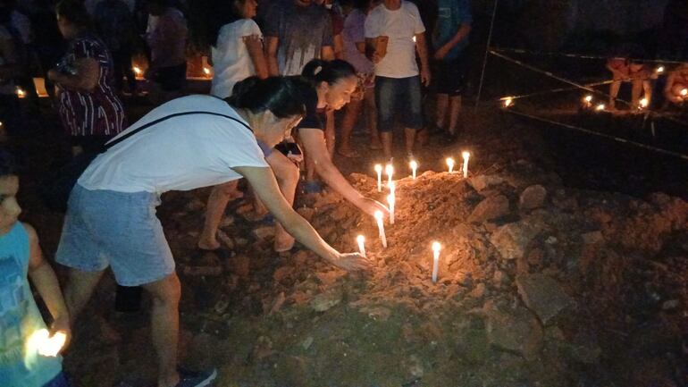 Durante la noche, vecinos de la zona y personas que acudieron acompañadas de sus familiares, entre ellos niños, jóvenes y adultos, se concentraron nuevamente en el sitio donde se creía que estaba el cuerpo. Allí rezaron en círculo, alzaron las velas encendidas en alto “para mostrar la luz al niño” y entonaron músicas cristianas en un ambiente cargado de emoción y solidaridad.