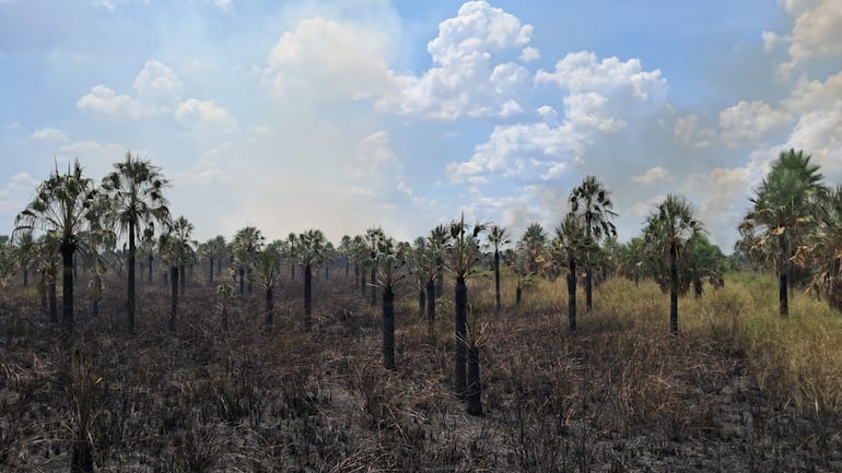 Ana Espinoza, bombera voluntaria de San Bernardino, confirmó que el gran incendio compromete una gran extensión de la Reserva Aguapey. Afirmó que ya pudieron corroborar que 40 hectáreas fueron completamente consumidas.