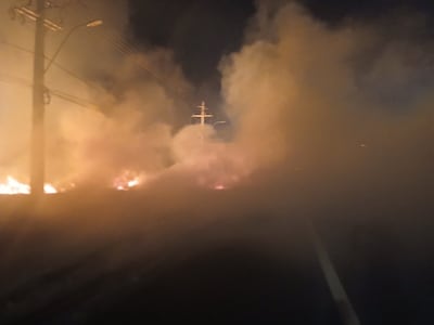 La humareda generada por el siniestro cubre gran parte de la vía, reduciendo considerablemente la visibilidad y provocando complicaciones en la circulación vehicular. Obreros del consorcio Rutas del Este se encuentran en el lugar colaborando con el ordenamiento del tránsito, guiando a los conductores y señalizando los tramos más afectados para prevenir accidentes.