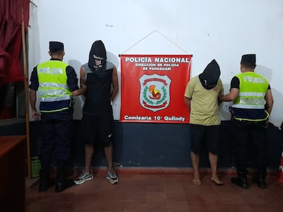 Los aprehendidos fueron identificados como José Carlos Soto Enciso (25), domiciliado en la ciudad de Caacupé, y Alan Tobías Larrea Guanes (22), domiciliado en la compañía Saguazú de Yaguarón, este último con antecedentes por hurto agravado (2024) y circulación de moneda no auténtica (2013).