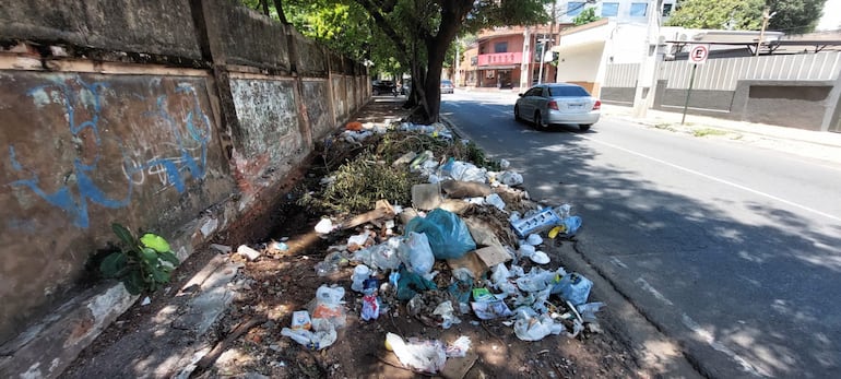 Otro vertedero importante está en la esquina de Blas Garay (4ta Proyectada) y Caballero, donde la basura toma toda la vereda, que también está destruida. Sobre Yegros, entre 21a Proyectada y 5ta Proyectada, hay basuras en prácticamente todo el paseo central.
