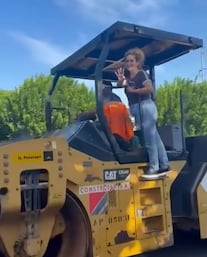 Durante el acto, la precandidata fue filmada mientras se encontraba subida a una compactadora de asfalto utilizada en los trabajos. Desde lo alto de la maquinaria saludaba a los presentes, en una escena que posteriormente fue difundida en redes sociales.