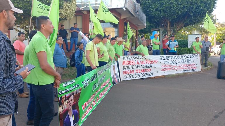 “Cuando quieren mentir al pueblo dicen que nosotros somos privilegiados y que el pueblo va a pagar nuestra jubilación (…) Es importante que quede claro a la ciudadanía que hay privilegiados pero no somos nosotros”, manifestó uno de los docentes presentes en el mitin organizado en Coronel Oviedo.