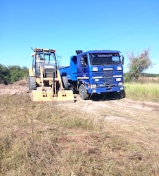 De acuerdo con el relato, en el sitio siguen operando un tractor con pala excavadora y al menos dos camiones de gran porte que transportan arena.