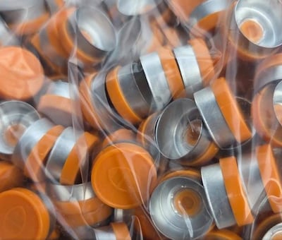 Las autoridades detallaron que los elementos hallados coinciden con los estándares utilizados para el envasado de productos inyectables. Entre lo requisado se encuentran frascos viales de vidrio (16 x 27 mm / 15 mL), tapones de goma (tipo 13-A), tapas plásticas “flip-off” de color naranja, que presentan el logo “IF” y precintos de aluminio, además de una máquina selladora de tapas, herramienta fundamental para el acabado de los frascos apócrifos. Según comunicó Dinavisa, se trata de 80.000 unidades de cada insumo.