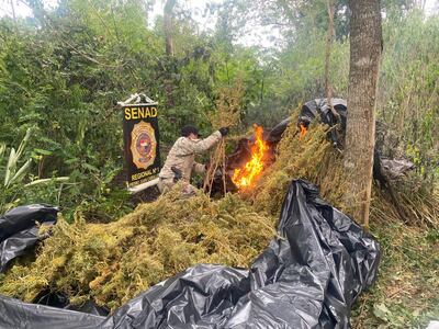 Agentes de la Secretaría Nacional Antidrogas (Senad) eliminaron aproximadamente 3 toneladas de marihuana en distintas áreas de cultivo y unos 1.500 kilos de la misma droga en etapa de secado, durante un operativo realizado en la colonia Aguará, distrito de Capitán Bado, Departamento de Amambay totalizando unos 4.500 kilos de droga destruida. Además, los intervinientes detectaron y destruyeron un campamento clandestino utilizado como base de procesamiento del estupefaciente, según un informe de la institución. No hubo detenidos durante el procedimiento.