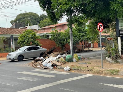 En barrios residenciales como Ciudad Nueva, los desperdicios fueron esparcidos frente a lujosas viviendas y sectores comerciales. La esquina de Vicepresidente Sánchez y Cerro Corá amaneció con escombros y bolsas domiciliarias y hasta muebles en desuso, como una vieja mesa, tapando el paso.