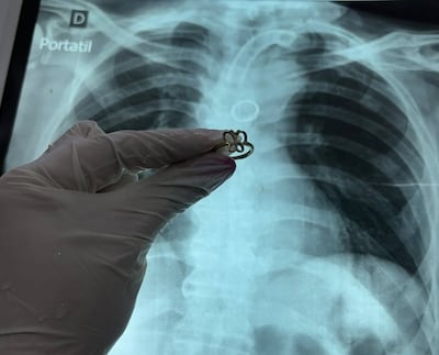 El neumólogo Carlos Morinigo relató el caso, señalando que el equipo médico se encontró con “lo impensado”: un anillo de oro de tamaño considerable alojado en el pulmón.